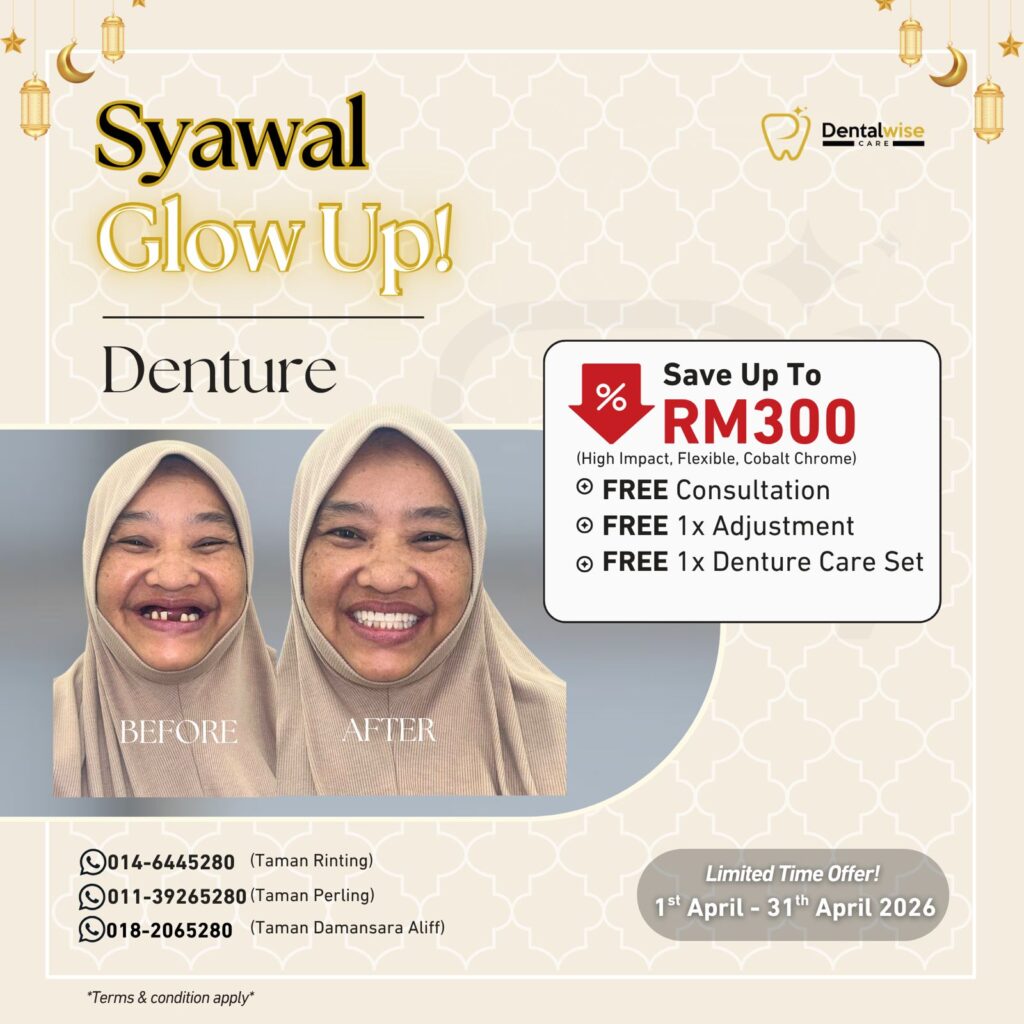 ✅ Percuma:• Konsultasi bersama doktor terlatih• 1 kali adjustment• Set penjagaan gigi palsu