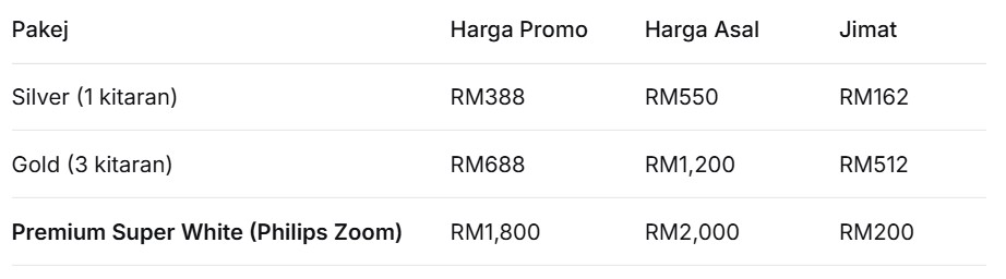 • Doktor gigi berpengalaman 8+ tahun • Teknologi pemutihan terkini • Klinik selesa & mesra pesakit
