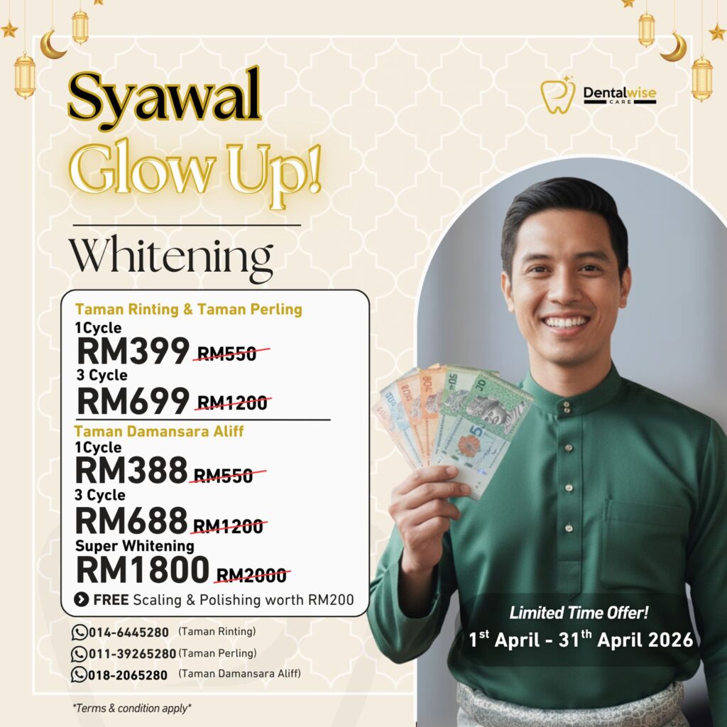 ✅ Pembersihan Gigi (Scaling & Polishing) – Nilai RM200 ✅ Konsultasi awal percuma ✅ Bahan selamat & diluluskan KKM ✅ Hasil serta-merta – prosedur 1-2 jam sahaja